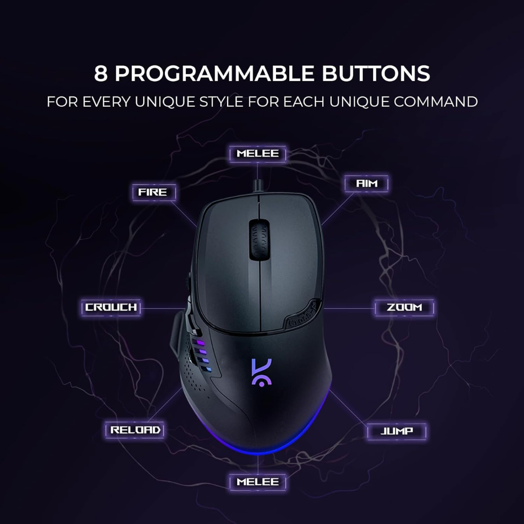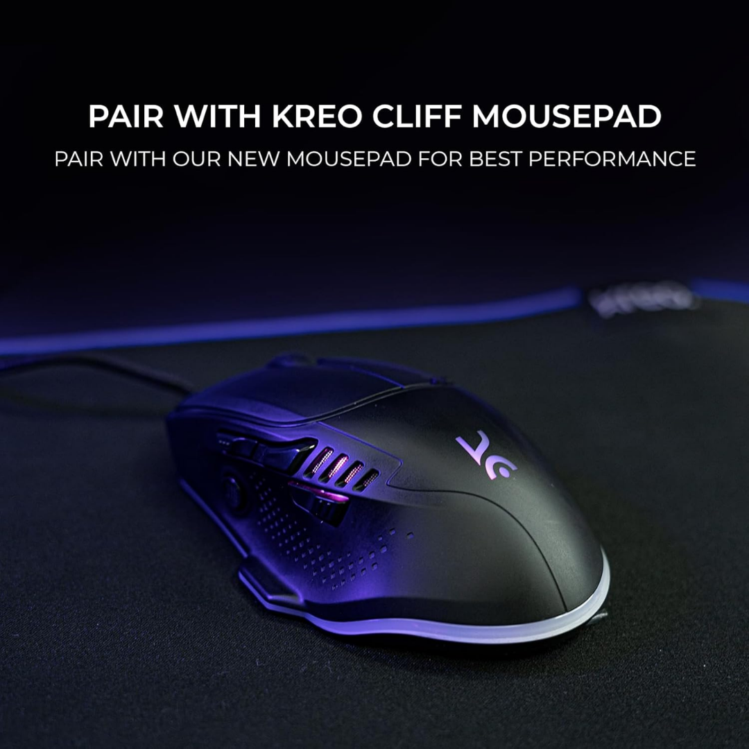 Kreo Hawk Wired Gaming Mouse PMW3327 Sensor | 12,400 DPI | 8 Programmable Buttons | Customizable RGB | Ergonomic Design (Black)