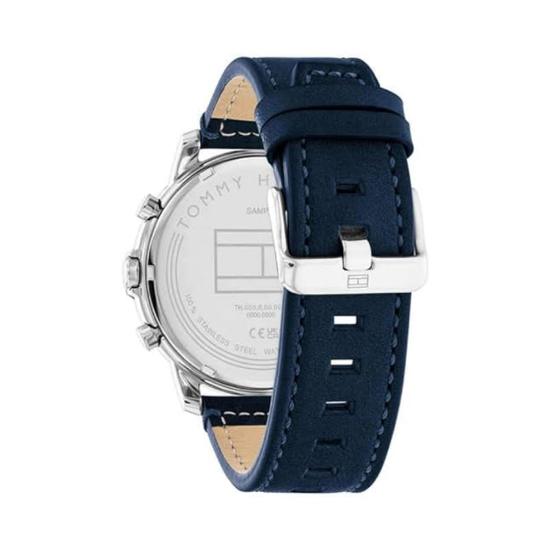 The Tommy Hilfiger Men’s Analog Watch (TH1792051) showcases a navy blue dial paired with a leather strap for a refined, timeless look. The watch is designed for everyday wear and offers practical features like a day-date display, water resistance up to 50 meters, and luminous hands for visibility in low-light conditions. Its 50 mm stainless steel case ensures durability while maintaining a sleek profile on the wrist.